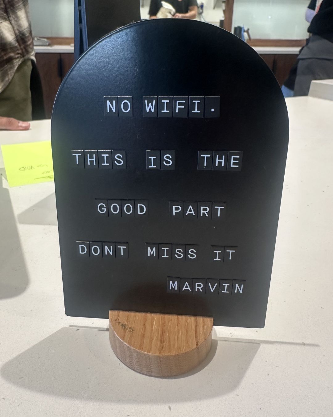 There’s even a sign on the counter that reads: “No WiFi. This is the good part. Don’t miss it.”