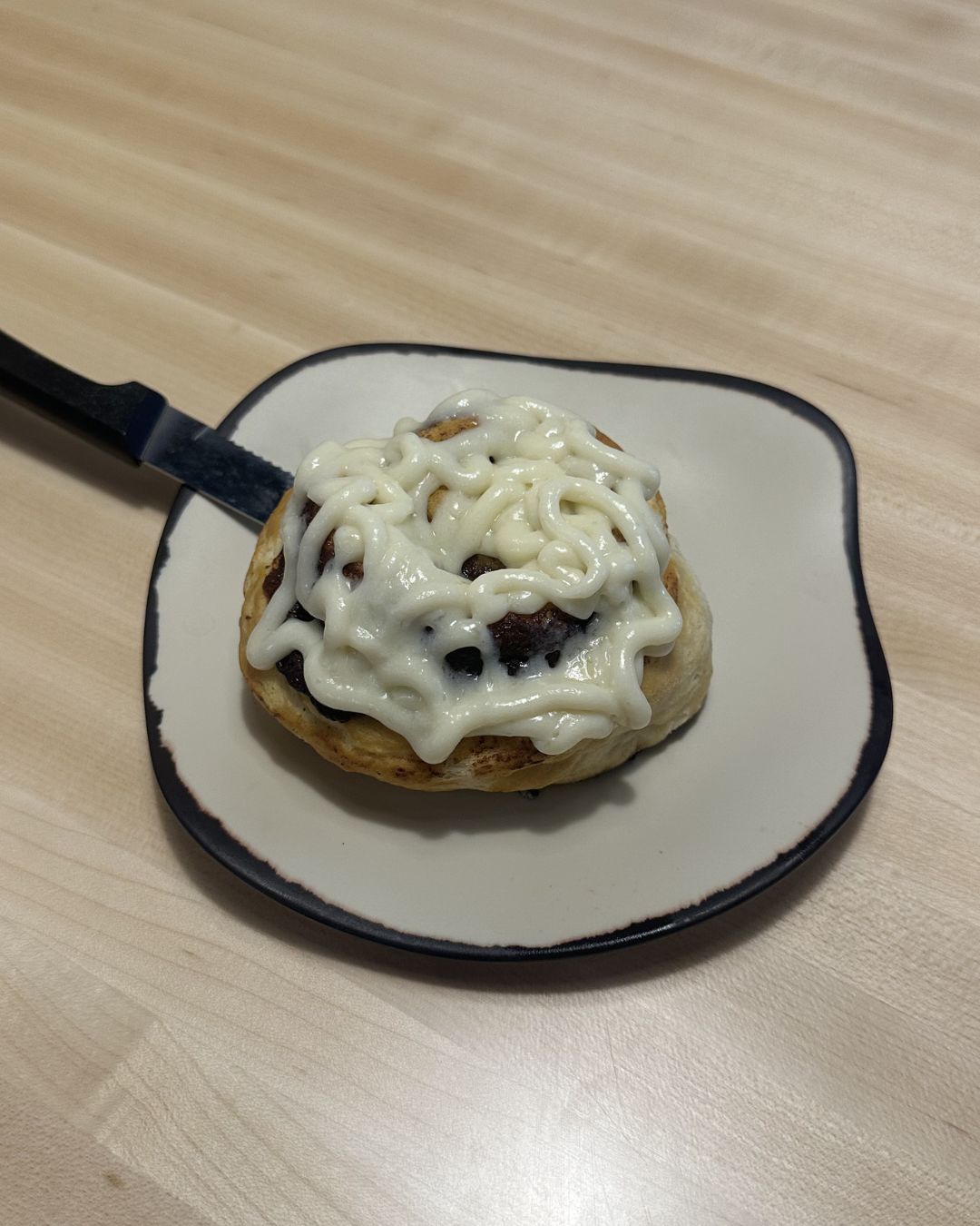 And you obviously have to finish brunch with dessert, so we ordered a cinnamon roll to share. It was the perfect way to end the meal — warm, soft, and exactly what you want after brunch. It also comes gluten-free if needed.