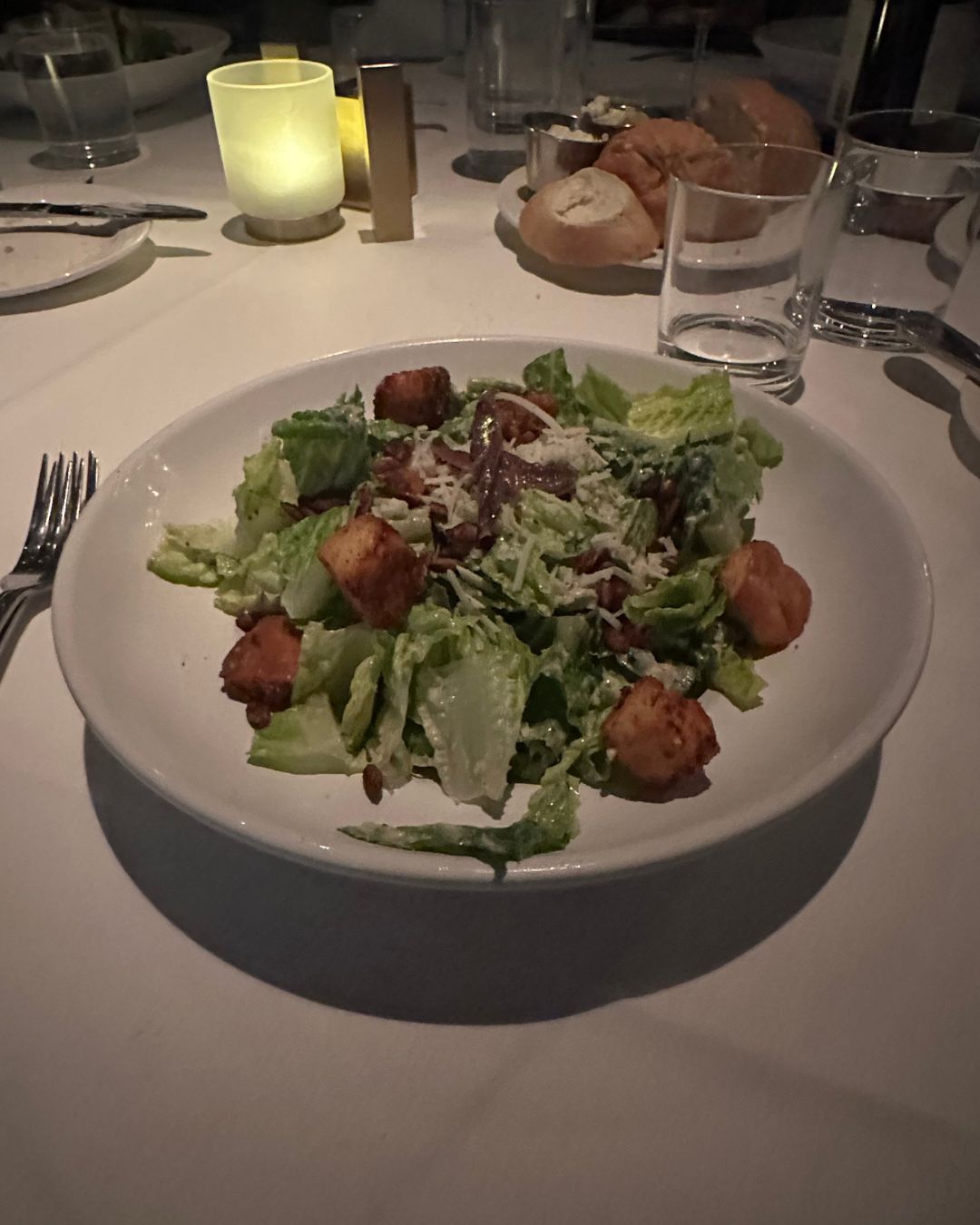 Oh, I didn't start or stop there. Started things off with the Caesar salad which was very large, had anchovies (I'm a fan), and very crunchy croutons (which I love). Two people at our table split the starter wedge salad due to its size — they're bringing out piles of bread, too. Got some loaded whipped potatoes on the side with the entrees which was basically a meal in and of itself ($16). Based on the amount of food that you get, the prices are totally worth it.
