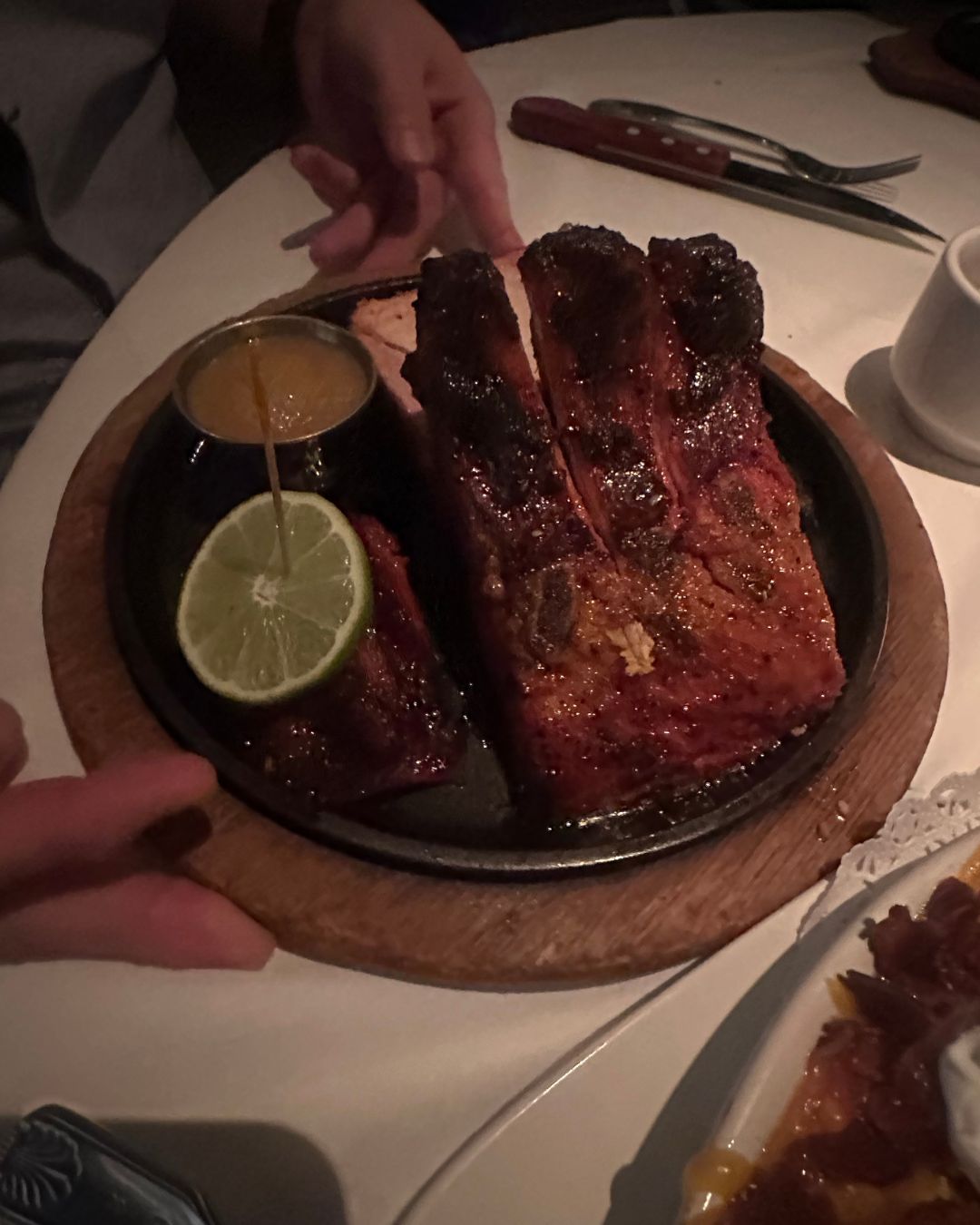 I split their famous pork chop and their ribeye. Not that the ribeye was bad, but if/when I go back, I'm sticking with the pork chop only. Pork falling off the bone, more meat than you know what to do with, and a flavor that’s hard to put into words. A cool touch is that it's carved up in front of you tableside.